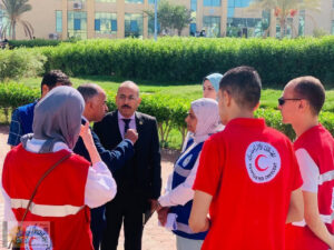 وقد تم الاتفاق على بدء التنسيق المباشر مع الهلال الأحمر من خلال وحدة التضامن الاجتماعى لتنفيذ حملة Red Week وورش توعوية وتدريب ميداني لطلاب الجامعة على العمل التطوعي ،وتدريب الطلاب على تعبئة المنتجات مع الهلال الاحمر ،بالإضافة إلى عمل ورش الإسعافات الأولية المقدمة من الهلال الأحمر .