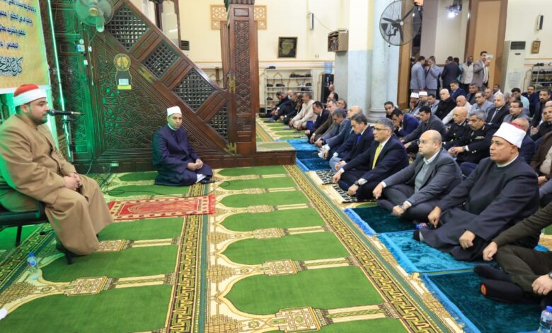 محافظ الجيزة يشهد احتفالية مديرية أوقاف الجيزة بذكرى ليلة الإسراء والمعراج بمسجد خالد بن الوليد بحي إمبابة