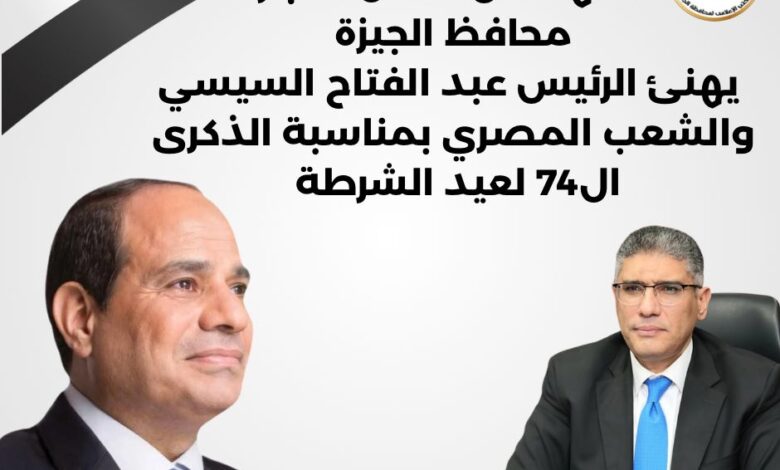 محافظ الجيزة يهنئ فخامة الرئيس بالذكرى الـ74 لعيد الشرطة