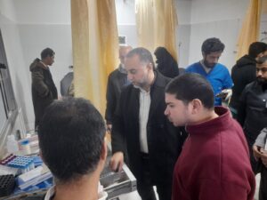 استهل وكيل الوزارة جولته بتفقد نقطة الحجر الصحي بمعبر رفح، حيث راجع جاهزية الأطقم الطبية وتوافر كافة المستلزمات الوقائية والعلاجية، مشدداً على أهمية الدور الذي يقوم به الحجر الصحي في فحص وضمان سلامة العابرين وفقاً للمعايير الصحية الدولية.