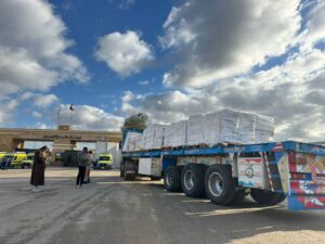 عبور 25 شاحنة مساعدات إماراتية إلى كرم أبو سالم بالتعاون مع وكالة الإمارات للمساعدات الدولية والهلال الأحمر الإماراتي