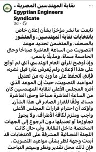 إن ما حدث يعيد طرح سؤال مهم حول أهمية الدقة في نشر الإعلانات الرسمية المتعلقة بالانتخابات، وضرورة التأكد من اعتمادها قبل تداولها للرأي العام. فالمشهد النقابي في هذه المرحلة يحتاج إلى قدر كبير من الانضباط والمسؤولية، خاصة مع تصاعد الاهتمام بدور النقابة في الدفاع عن حقوق المهندسين وتعزيز حضورها المهني والمجتمعي.