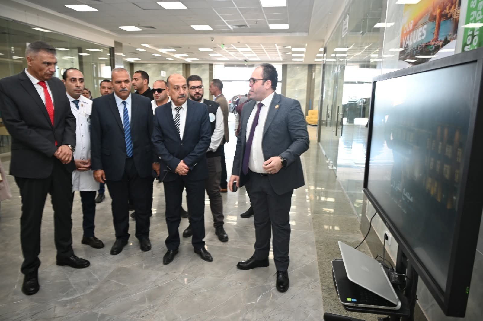 رافق المحافظ خلال الزيارة الدكتورة إيناس سمير نائب المحافظ، واللواء إيهاب مكاوي السكرتير العام، وعلي حمادة رئيس مدينة طور سيناء، وكان في استقباله الدكتور محمد عبد الهادي مدير فرع الهيئة العامة للرعاية الصحية بالمحافظة، وعدد من القيادات الطبية بالمجمع.