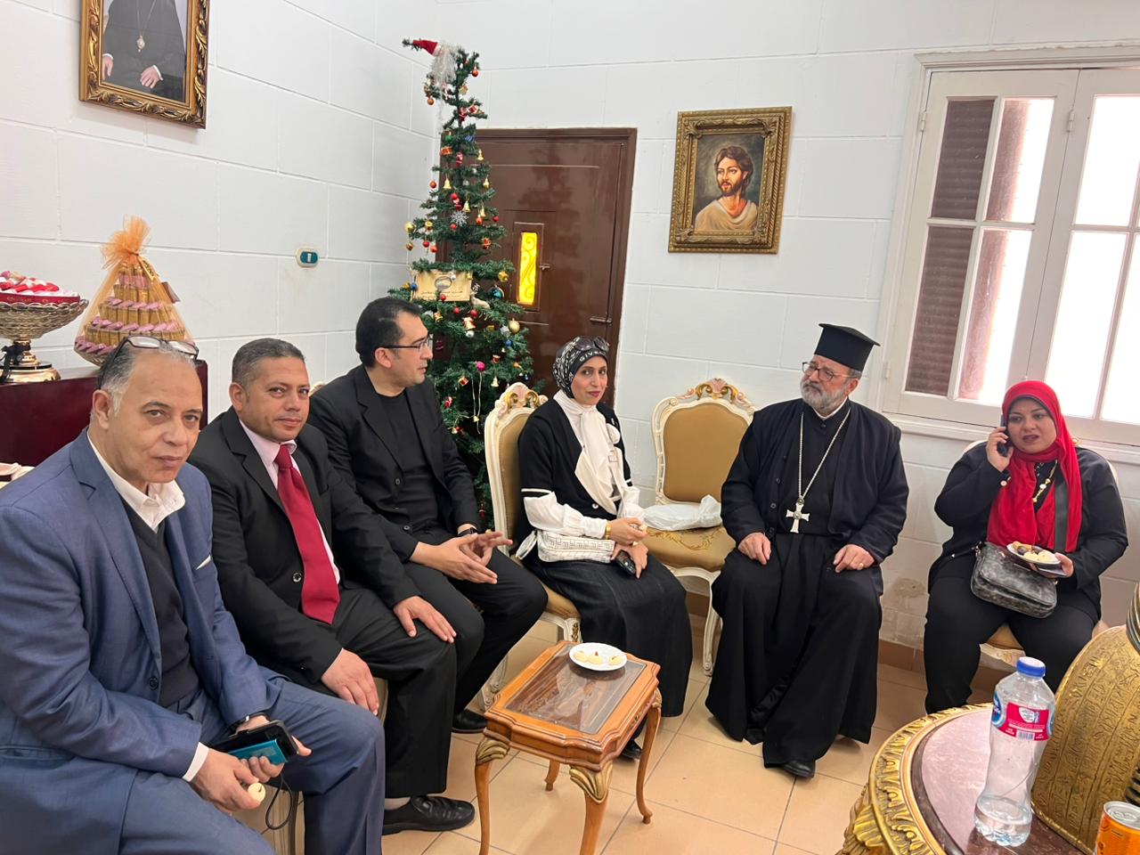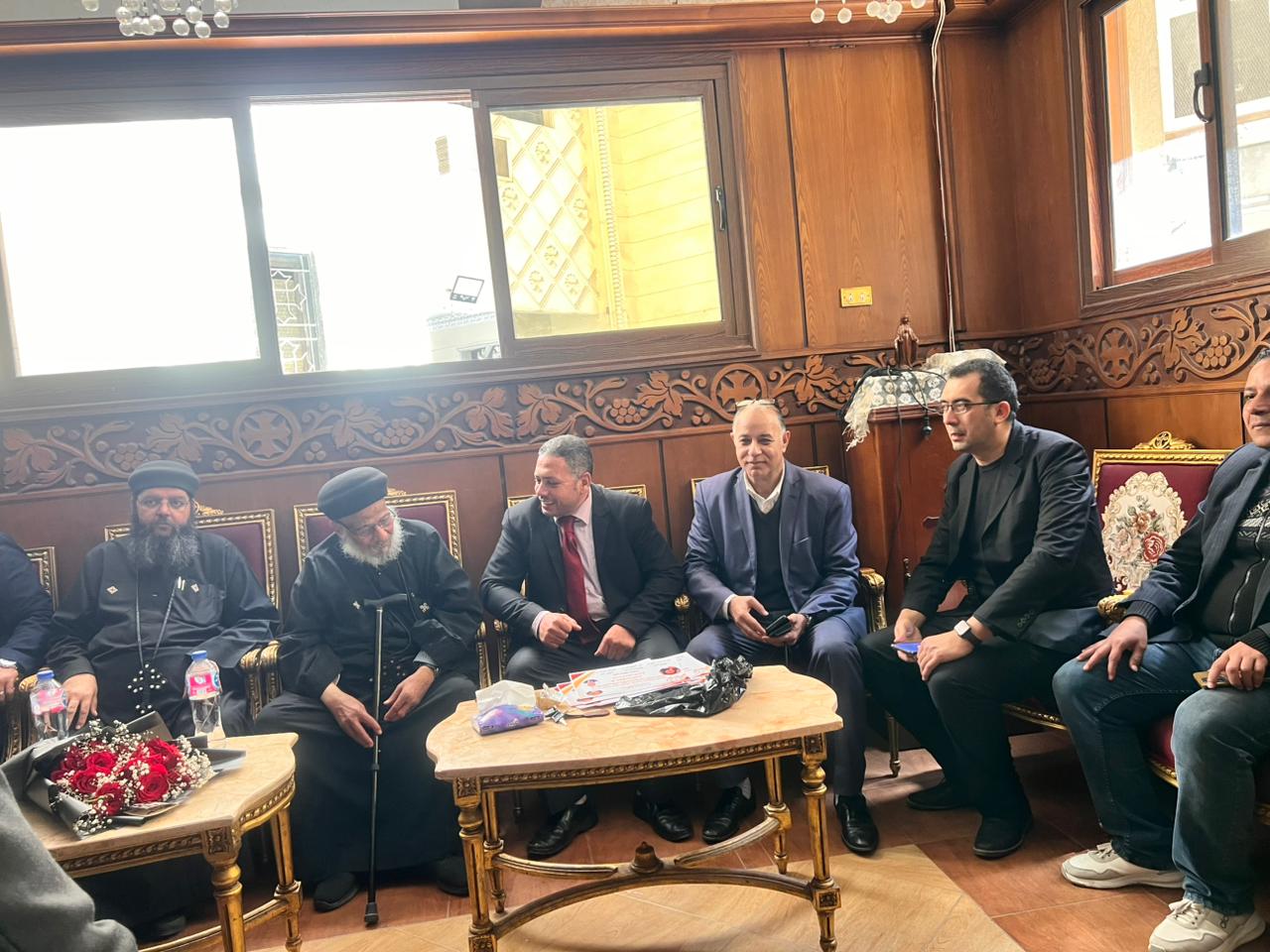 وتراس الوفد الاستاذ اشرف عبد الرازق امين العمل الجماهيري بالجمهورية يرافقه الدكتور حماده زاهر نائب رئيس الإئتلاف وبعض الساده الزملاء وتم تقديم التهنئة للقس الانبا بندلمون بكنيسة الارثوذكس وتم زيارة الكنيسه الإنجيلية وتقديم التهنة للقس مرقص وذلك وسط أجواء تملئها الفرحه والسعادة والأمان